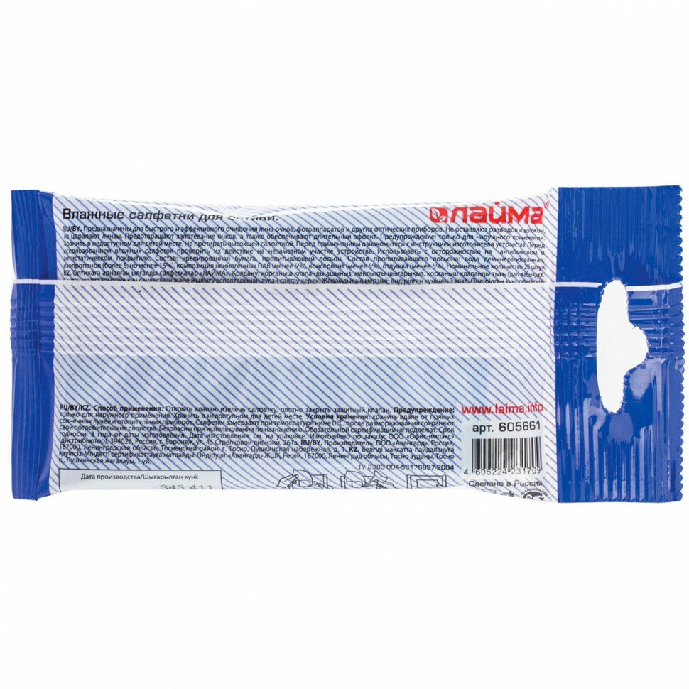 Купить Салфетки влажные LAIMA "для очков и оптики" (смартфоны, объективы) компактная упаковка, 20 штук, 605661