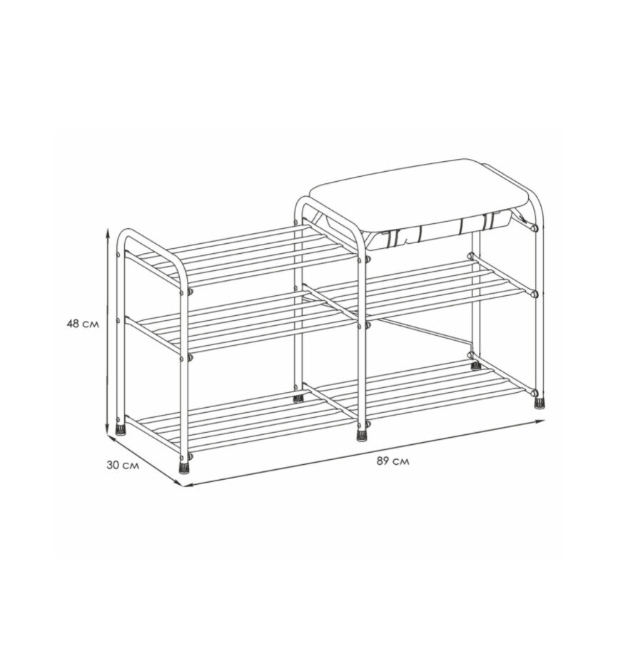 Не определен Этажерка для обуви с сиденьем (ЭТП3/С), 2 полки, 79×33×52,2 см, цвет серый