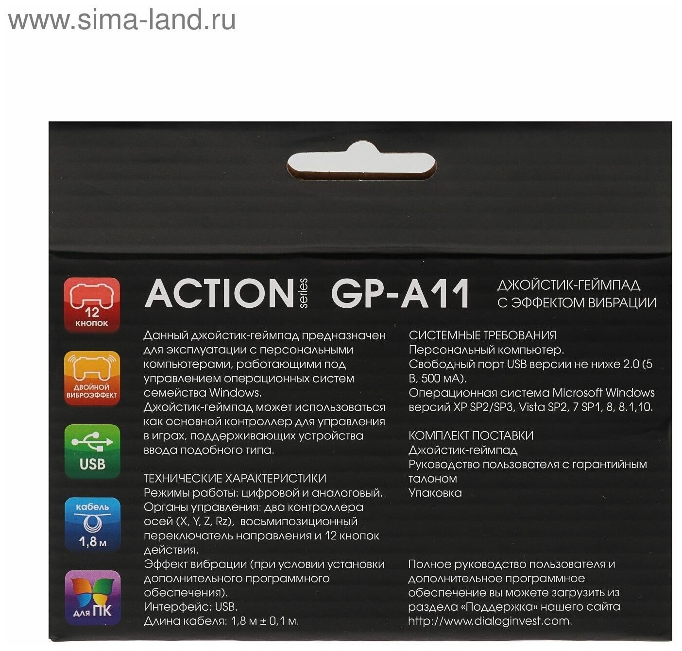 Геймпад Dialog GP-A11 Action - вибрация, 12 кнопок, Usb, черный .