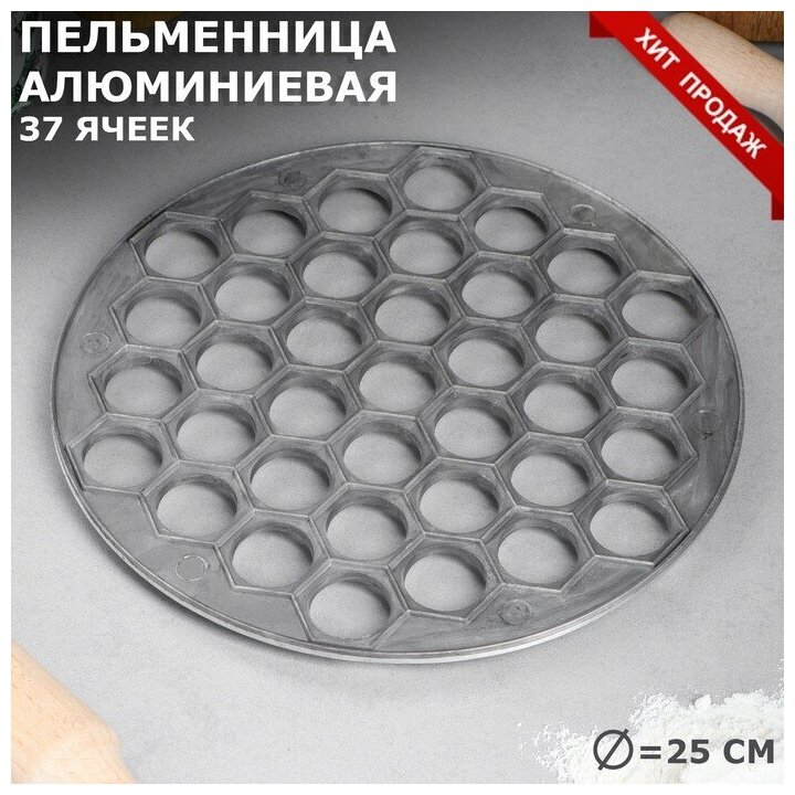 Пельменница алюминиевая, тяжелая, d=25 см, диаметр 2.5 см, 37 ячеек