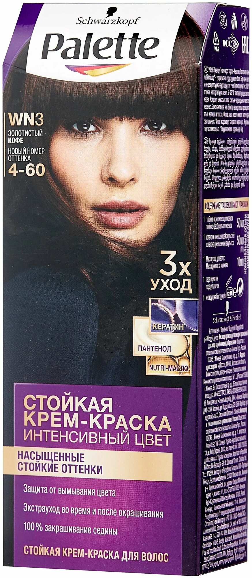 Палетт Стойкая крем-краска Интенсивный цвет, WN3 4-60 Золотистый кофе, 110 мл - 1 шт