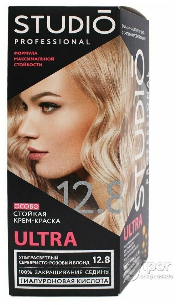 Купить Стойкая краска для волос Studio professional 12.8 Ультрасветлый серебристо-розовый блонд, ULTRA 50/50/15 мл