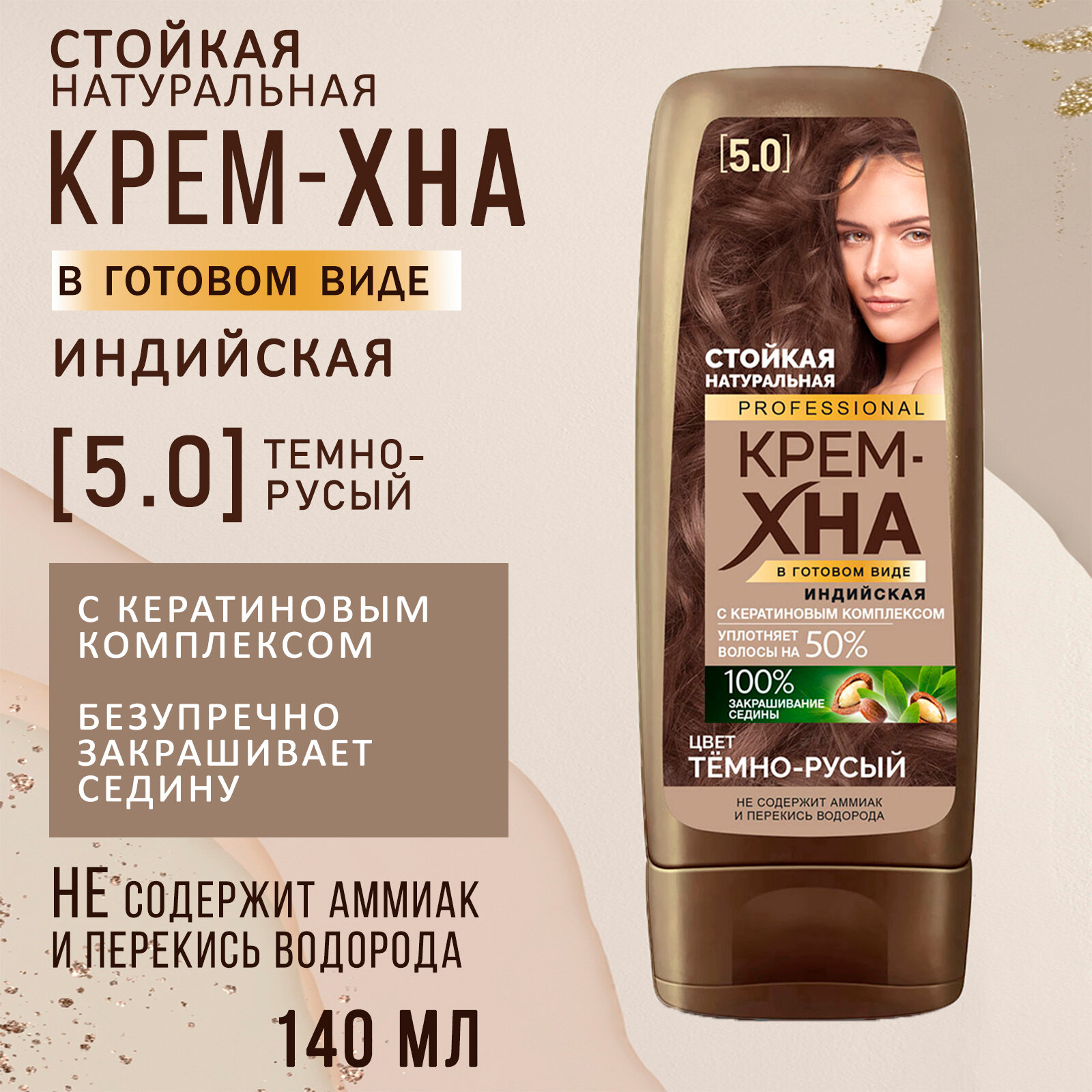 Крем-хна индийская в готовом виде , тон золотистый каштан, 140 мл