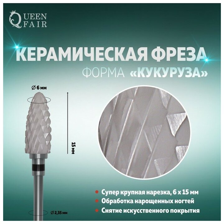 Фреза керамическая для маникюра «Кукуруза», супер крупная нарезка, 6 × 15 мм, цвет белый интересное: