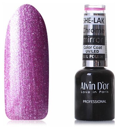 Alvin Dor She-Lak Chrome mirror Гель-лак для ногтей тон 6305 розовый с металлическим эффектом 8мл