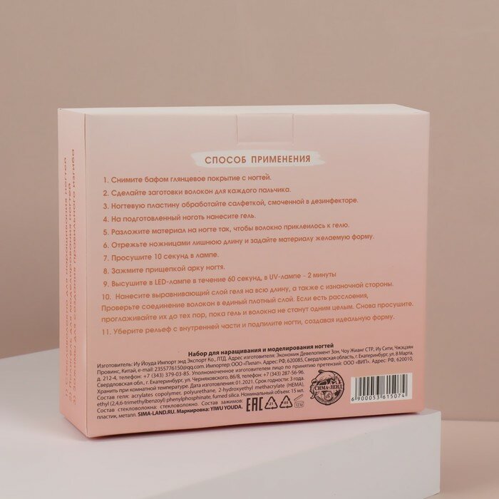 Набор для наращивания ногтей: стекловолокно, зажимы, прозрачный гель, в картонной коробке