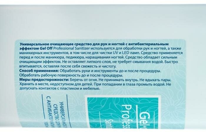 Очищающее средство для рук и ногтей Gel*off Sanitizer с антибактериальным эффектом, 150 мл 2785374