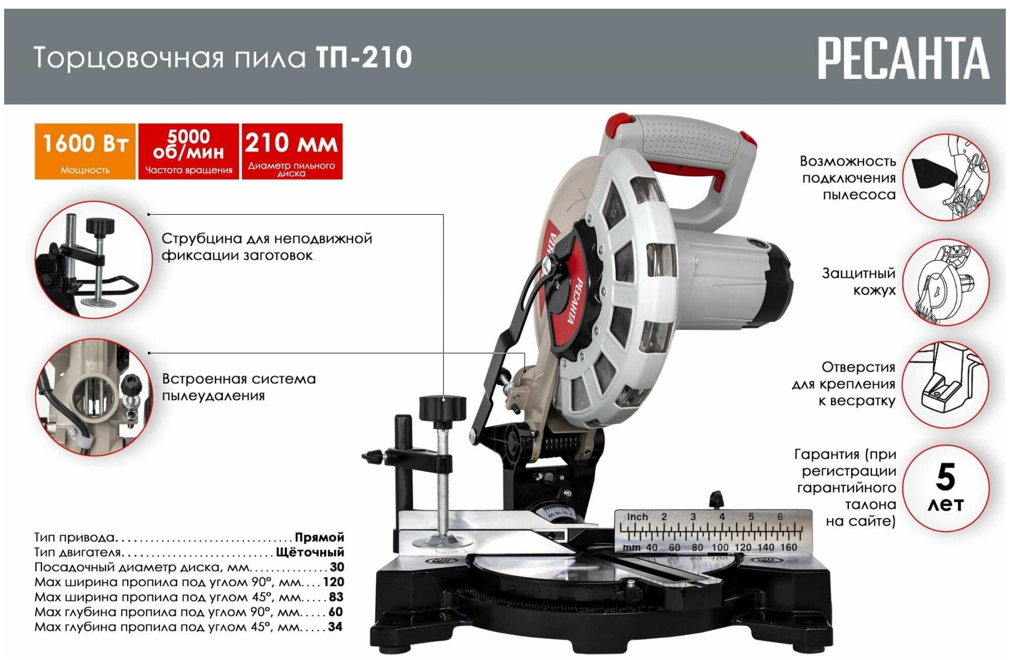 Торцовочная пила Ресанта ТП-210 интересное: