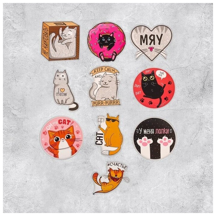 Наклейки стикеры «Котики», 10 шт, 7 ? 7 см