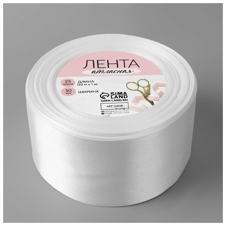 Арт Узор Лента атласная, 50 мм × 23 ± 1 м, цвет белый №01