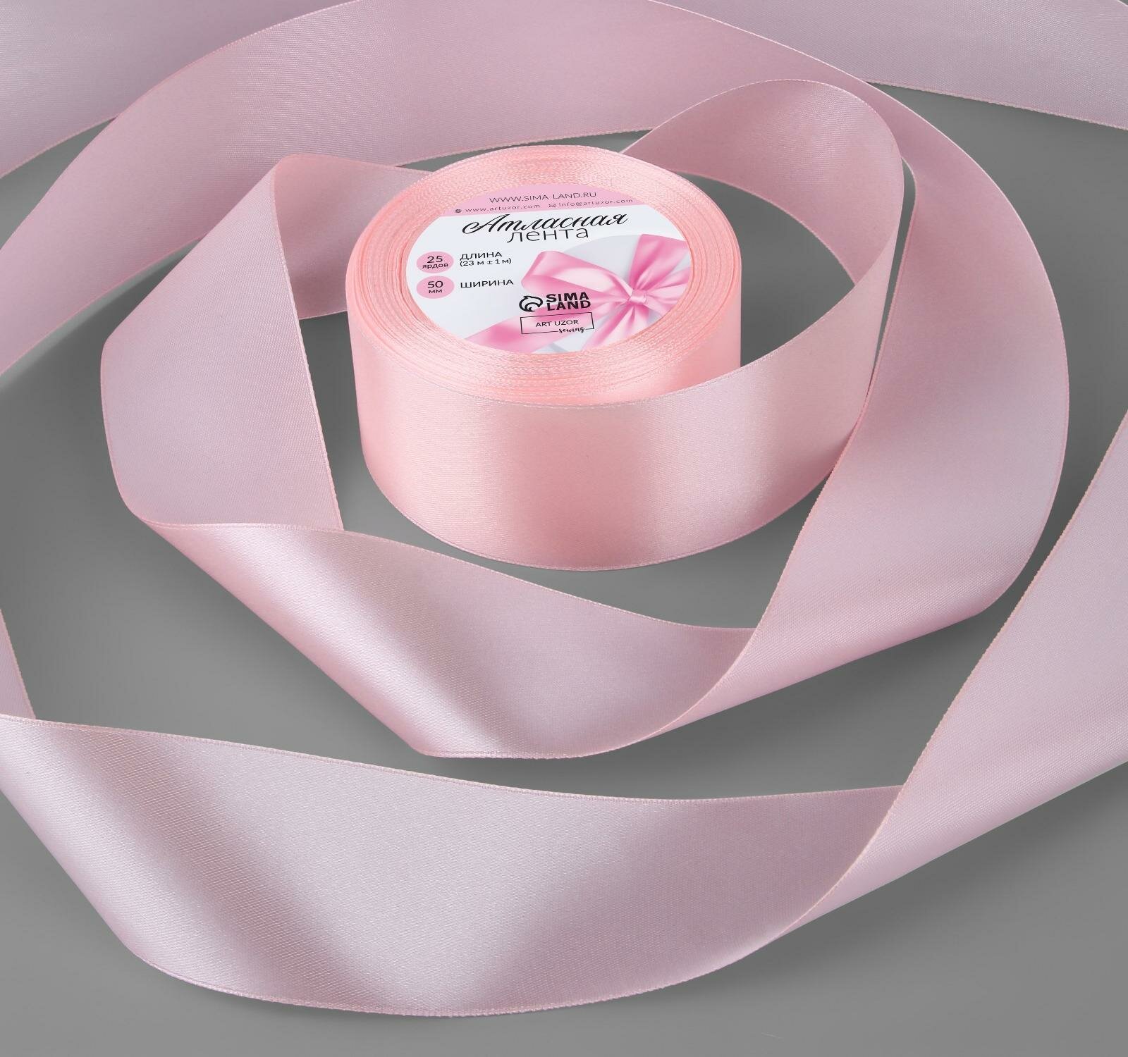 Лента атласная, 50 мм × 23 ± 1 м, цвет пастельно-розовый №43, "Арт Узор", материал полиэстер