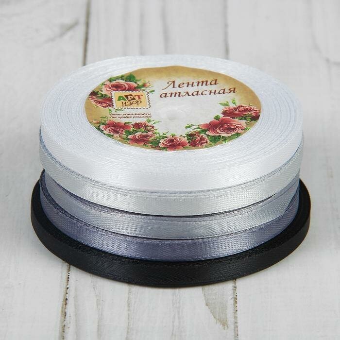Арт Узор Набор атласных лент, 5 шт, размер 1 ленты: 6 мм × 23 ± 1 м, цвет серый спектр