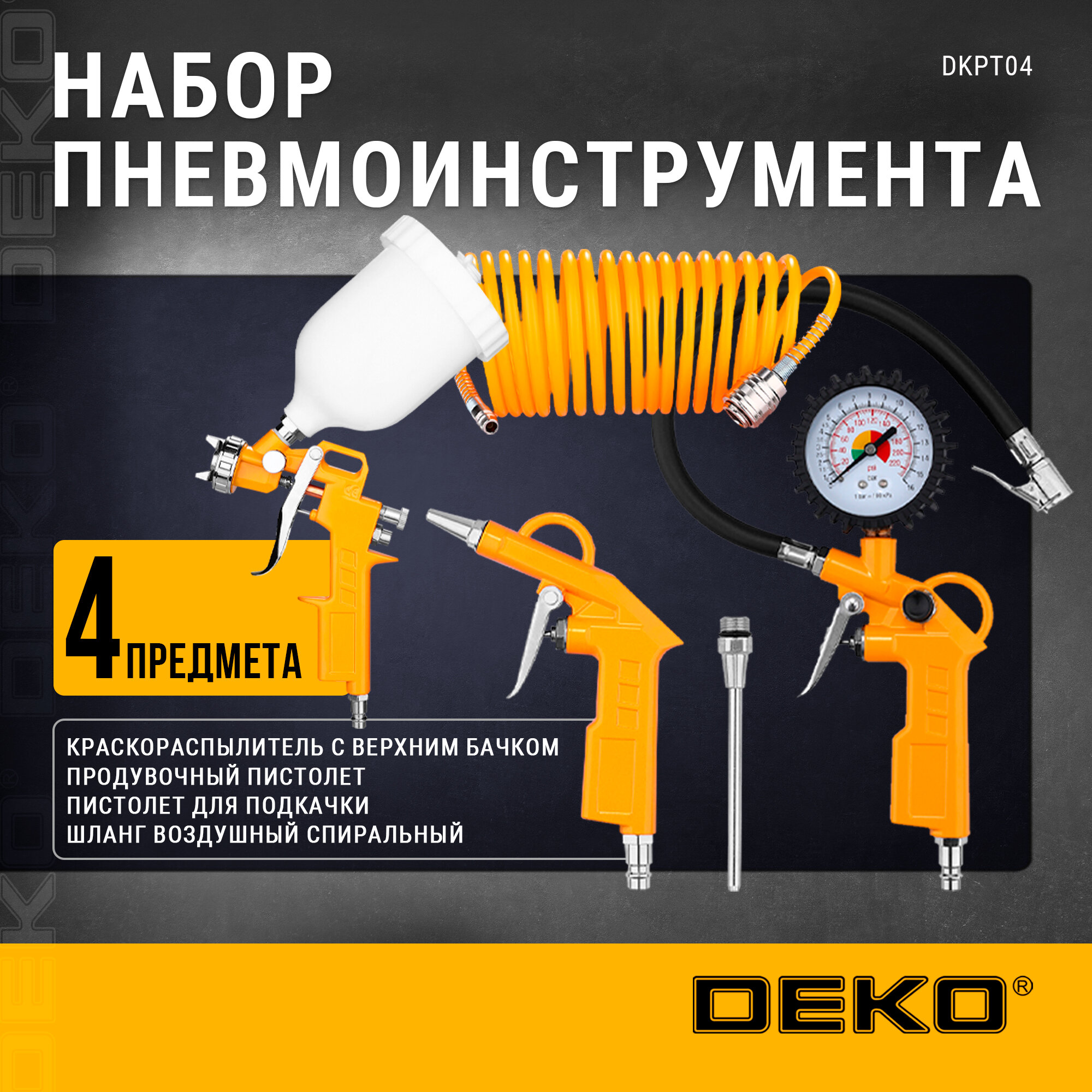 Deko Набор пневмоинструмента DKPT04 (4 предмета) 018-0916 .