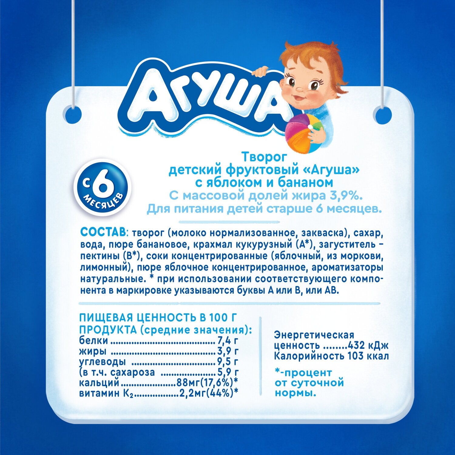 Творог агуша яблоко/банан, 3,9% 100г интересное: