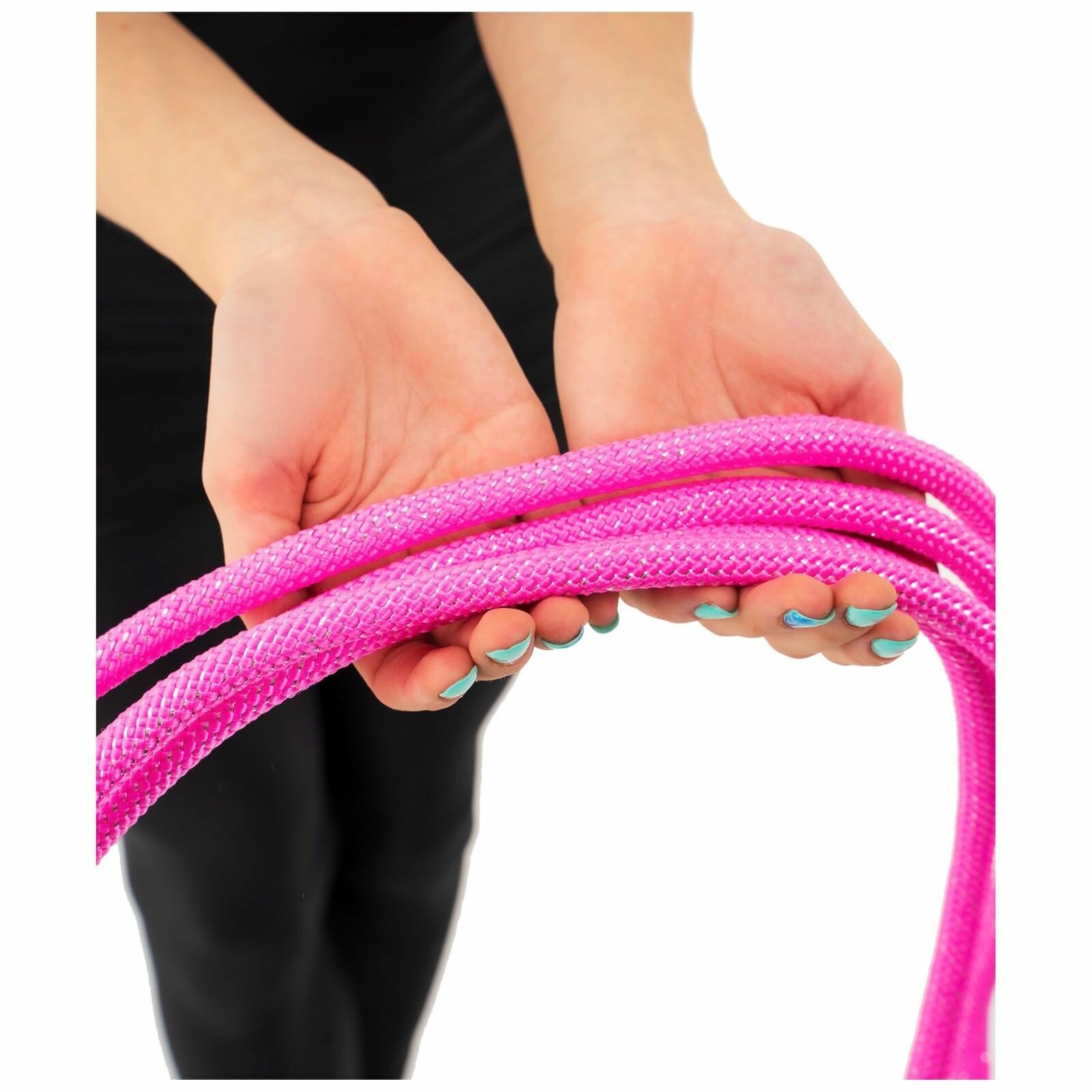 Скакалка гимнастическая утяжелённая, длина 2,5 м, цвет неон розовый/серебро, с люрексом