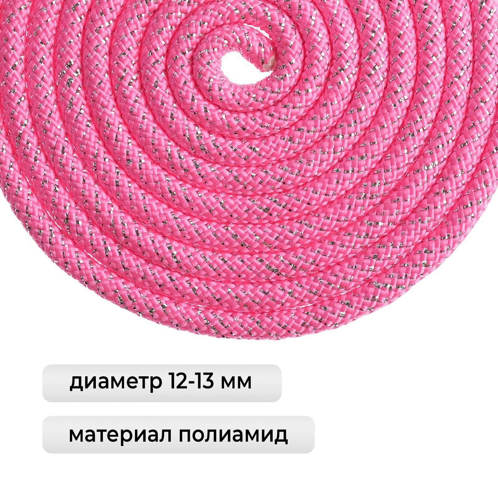 Скакалка гимнастическая утяжелённая Grace Dance, с люрексом, 3 м, 180 г, цвет неоновый розовый/серебристый