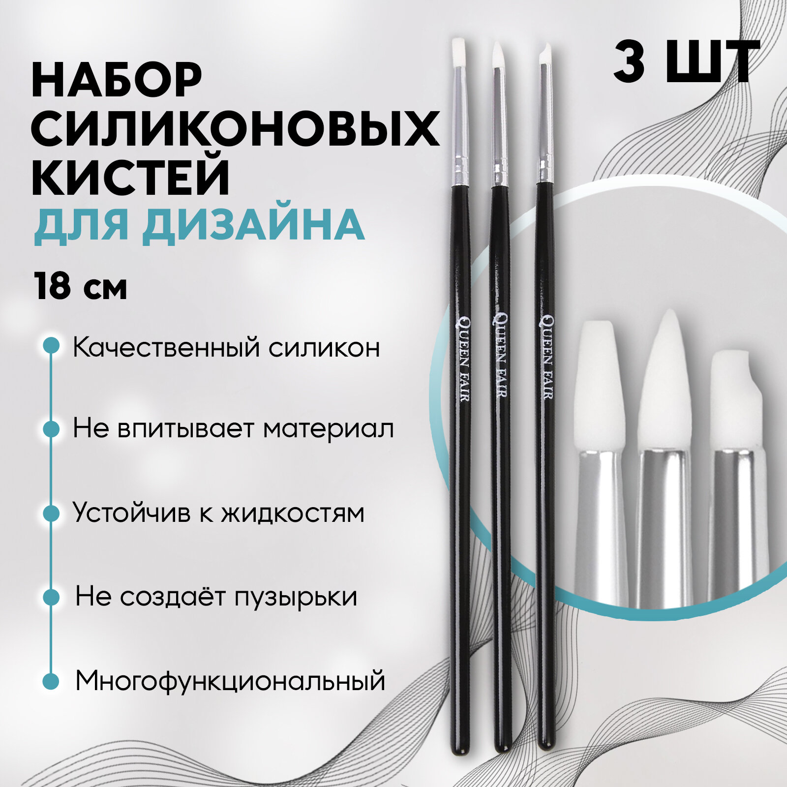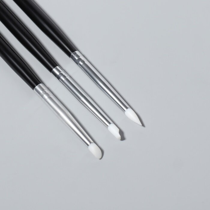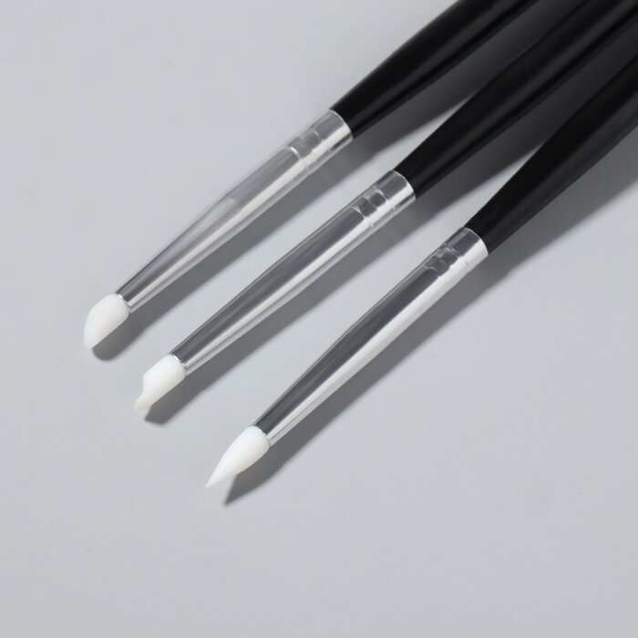 Queen fair Кисти силиконовые для дизайна ногтей, 3 шт, 18 см, цвет чёрный