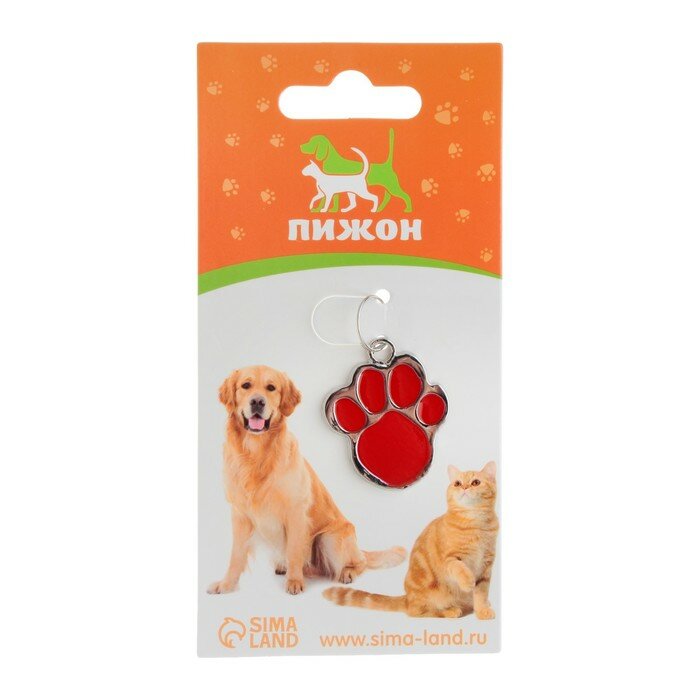 Купить Пижон Адресник фигурный под гравировку "Лапа", 2,6 х 3,2 см, красный