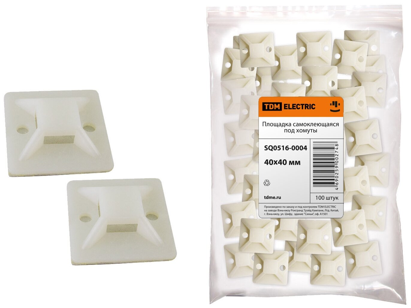 Площадка самоклеющаяся под хомуты, 100 шт, 40х40 мм, TDM, SQ0516-0004
