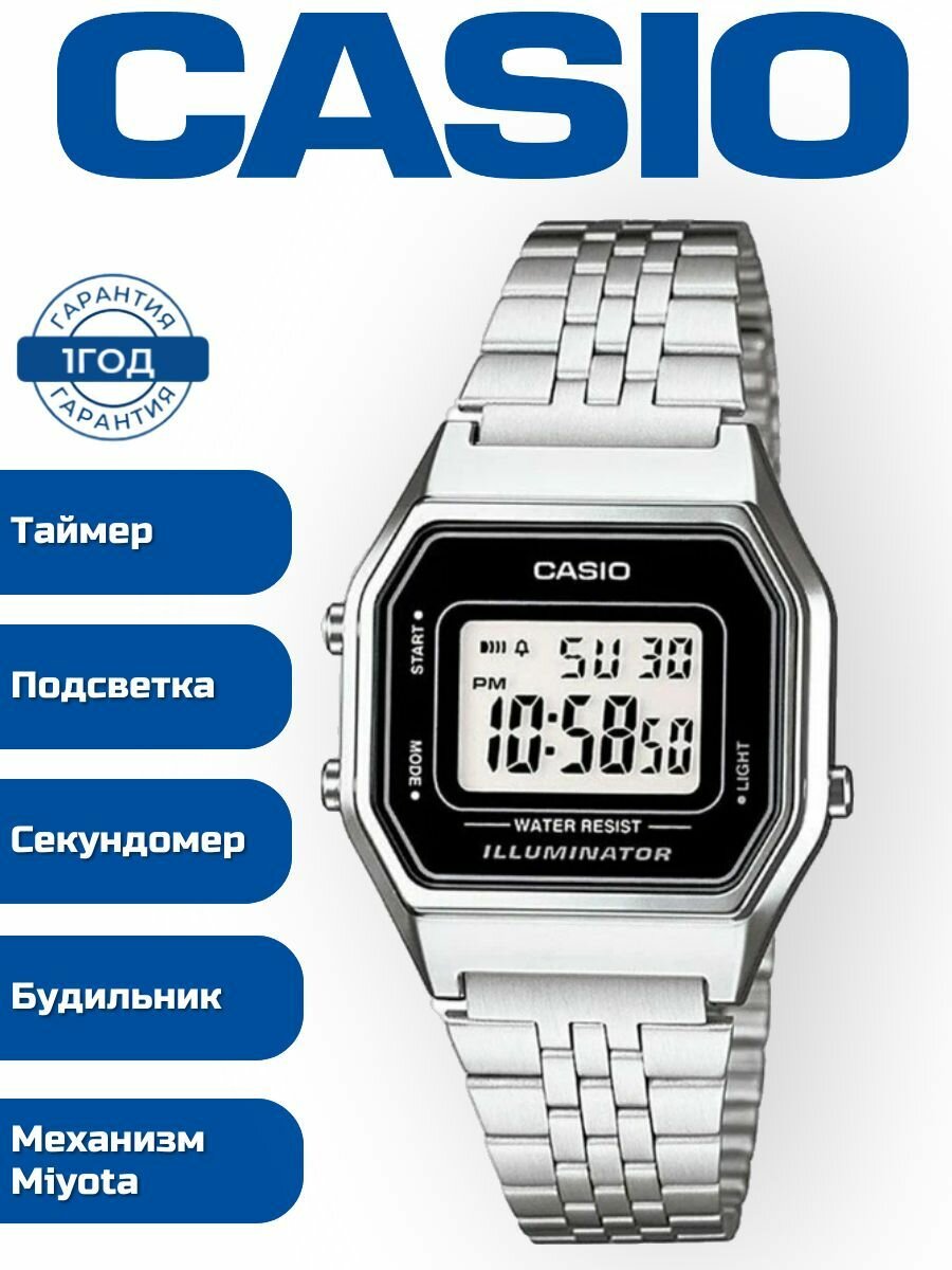 Наручные часы CASIO LA680WA-1B кварцевые женские подсветка дисплея WR30 (3 атм)