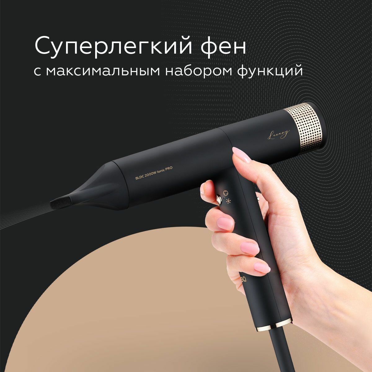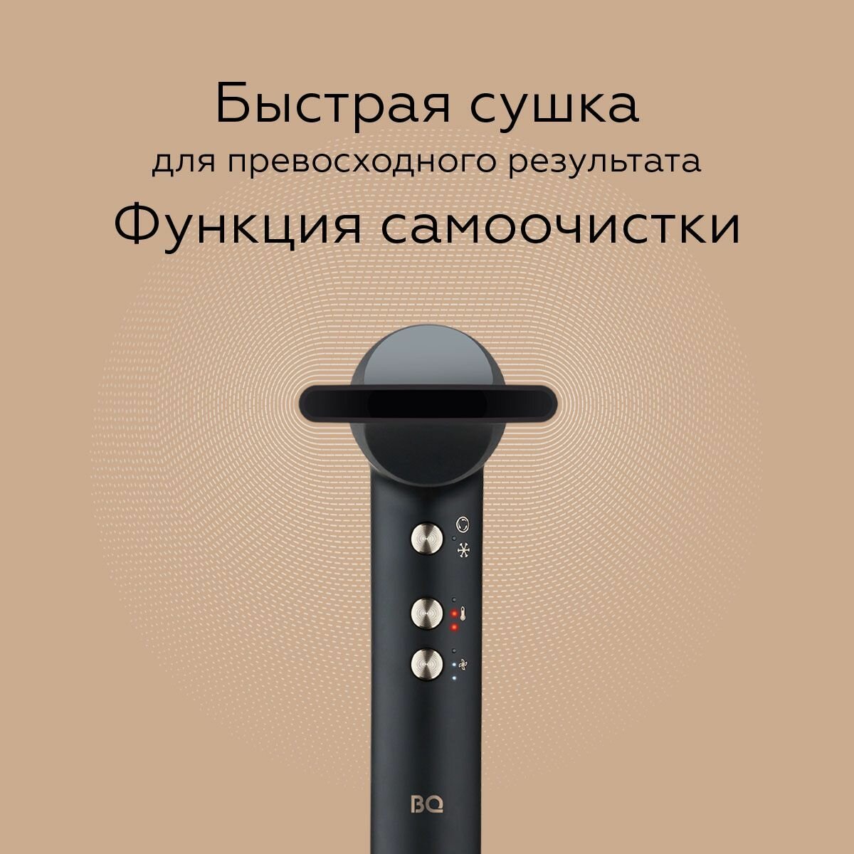 Фен BQ HD2222B 2200 Вт, 3 скорости, черный/золотой