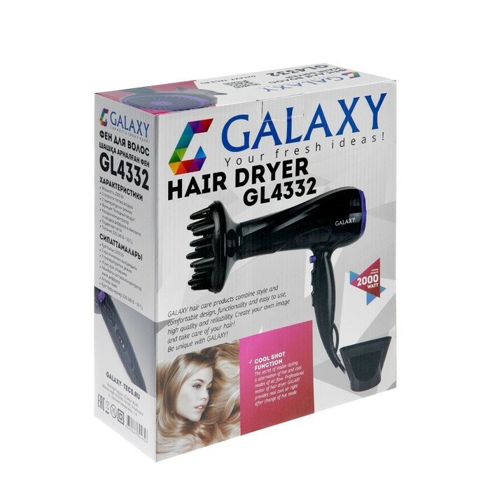 Купить Фен Galaxy GL 4332, 2000 Вт, 2 скорости, 3 температурных режима, черный./В упаковке шт: 1