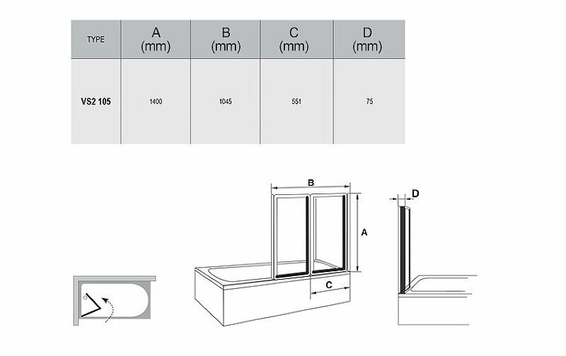Шторка для ванны складывающаяся двухэлементная Ravak VS2 105 сатин+grape 796M0U00ZG