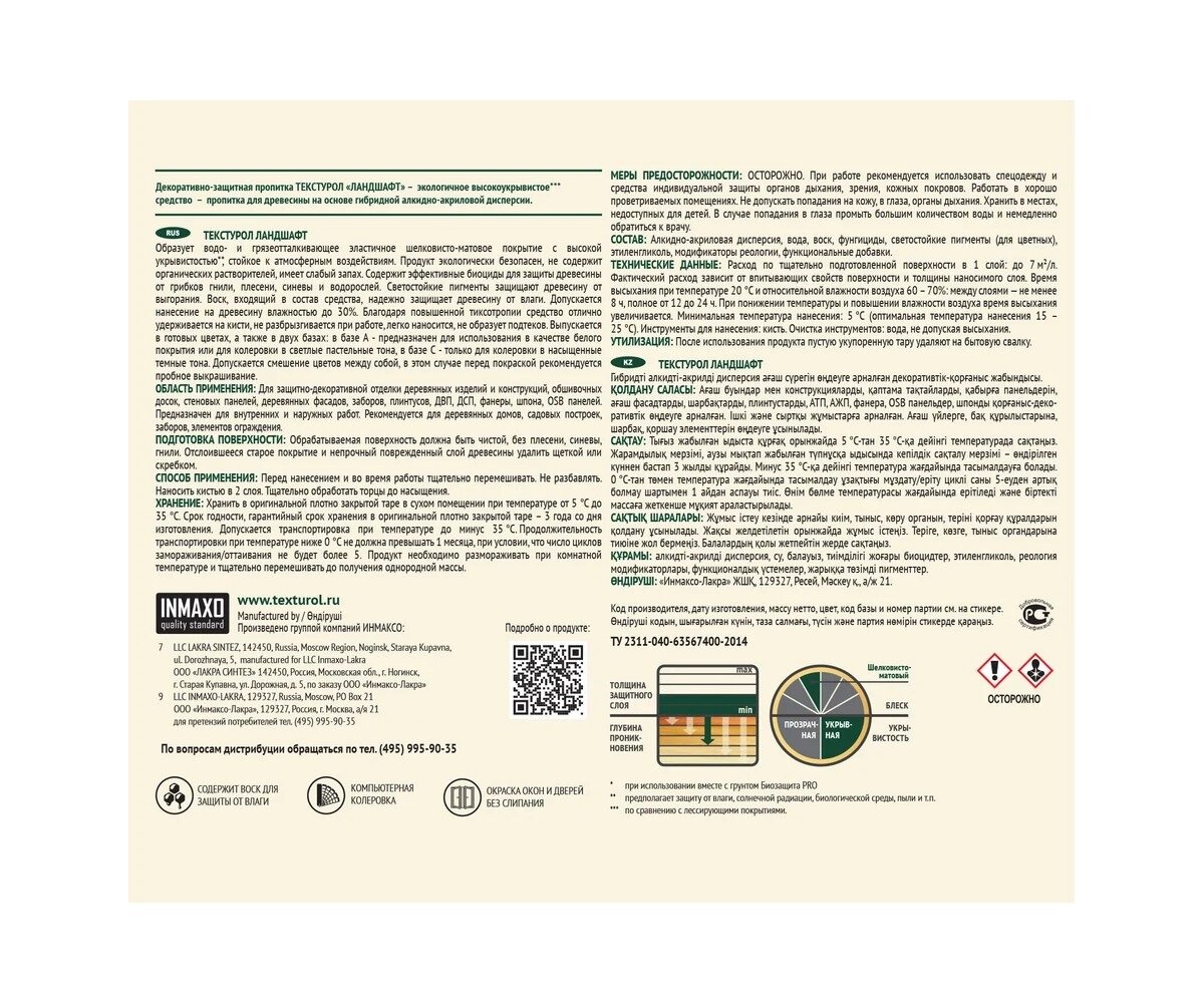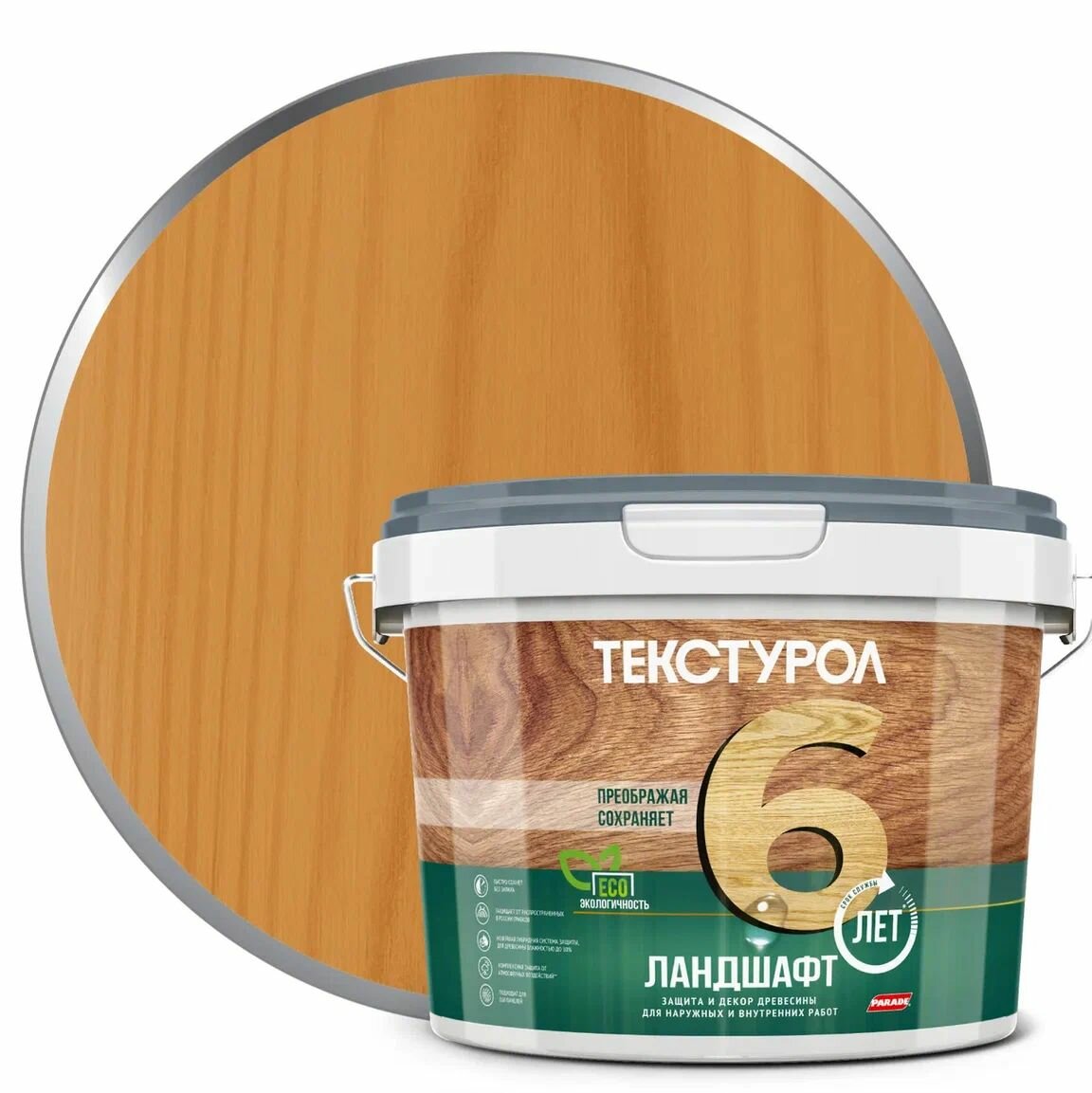 Защитное покрытие для древесины Ландшафт Текстурол 9 л сосна шелковисто-глянцевая