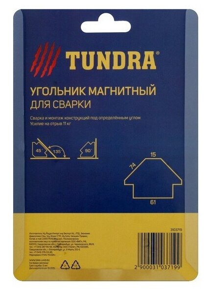 Магнитный угольник для сварки TUNDRA, 45,90,135, усилие на отрыв 11 кг TUNDRA 3103719 .