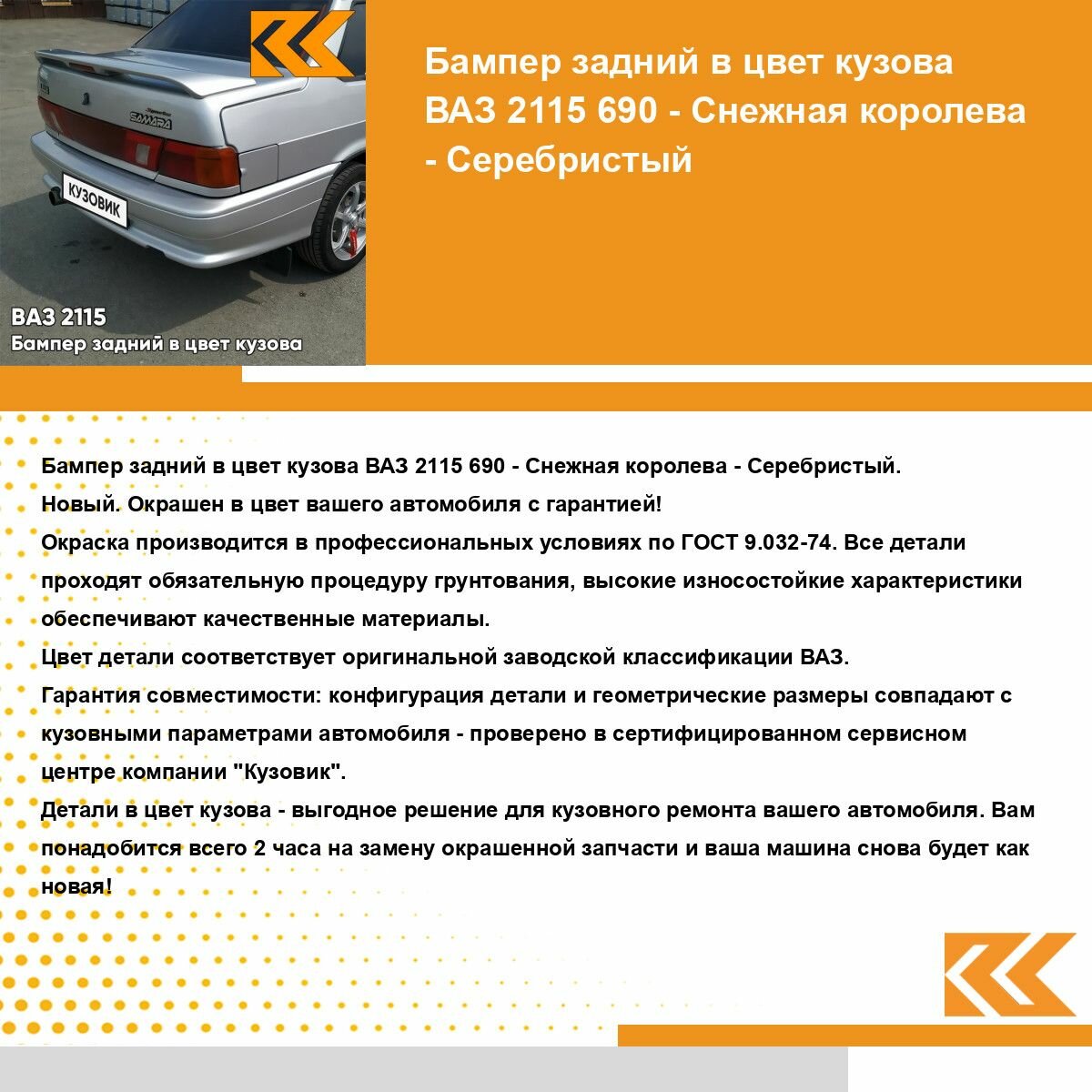 Бампер задний в цвет кузова ВАЗ 2115 690 - Снежная королева - Серебристый интересное: