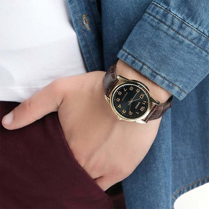 Наручные часы CASIO MTP-V001GL-1B, черный, золотой