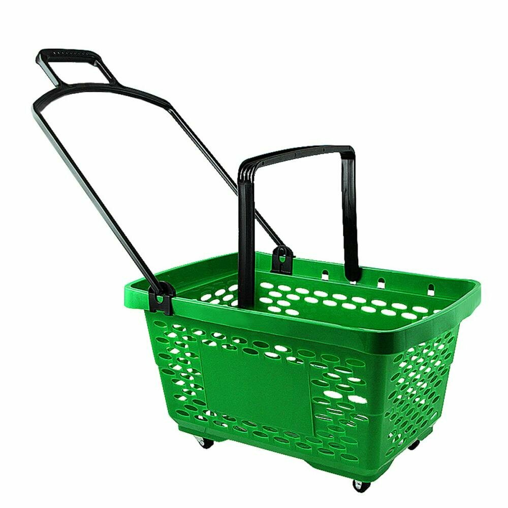 Купить Корзина-тележка на 4 колесах пластиковая, 28 л, с 2 пластиковыми ручками, цвет зелёный