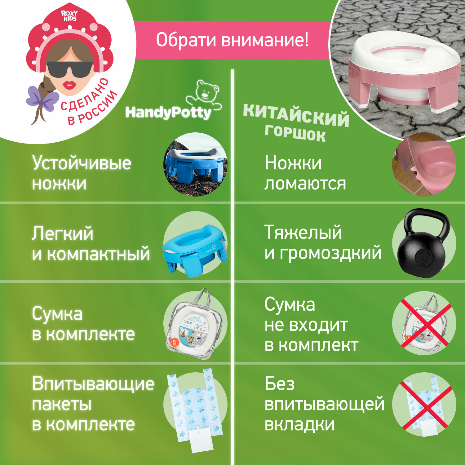 Горшок детский складной дорожный 3в1 для малышей HandyPotty ROXY-KIDS