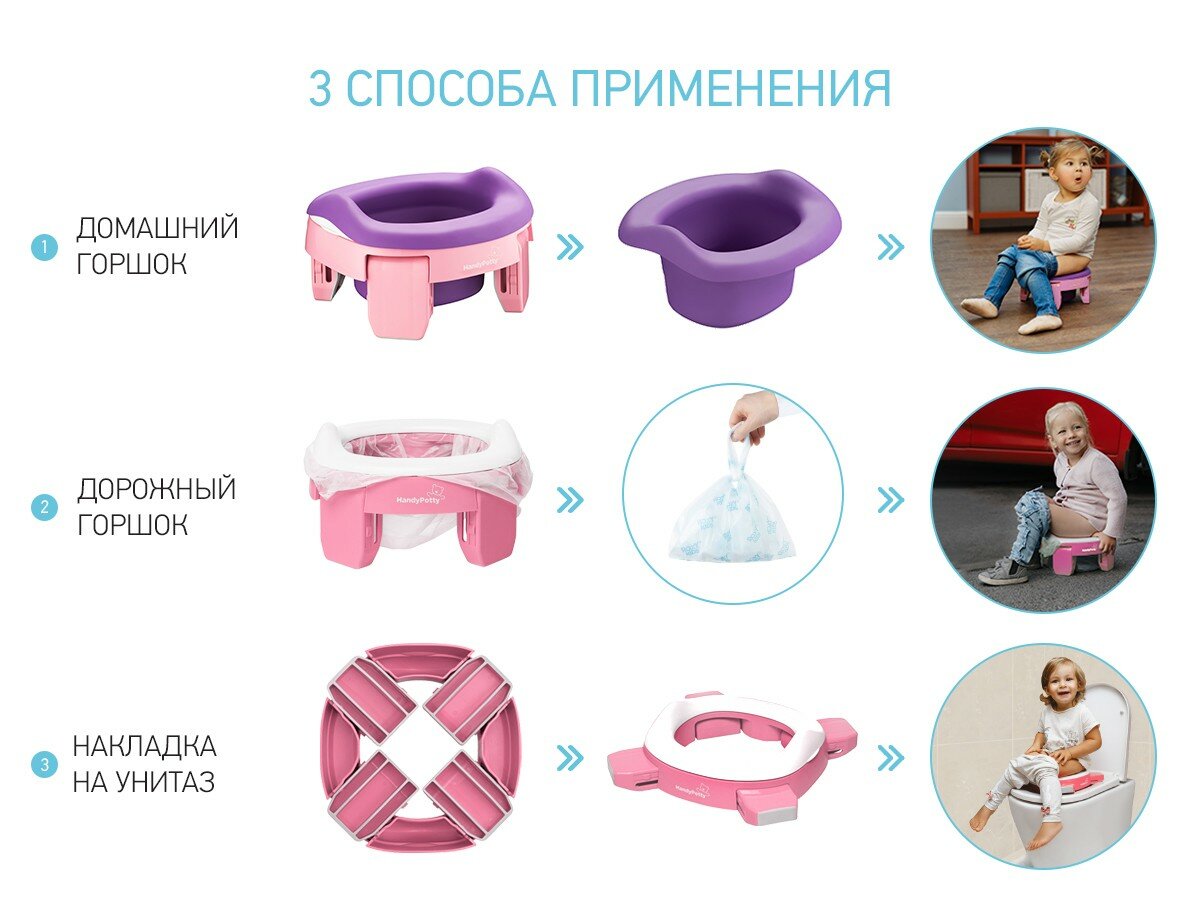 Горшок детский складной дорожный 3в1 для малышей HandyPotty ROXY-KIDS