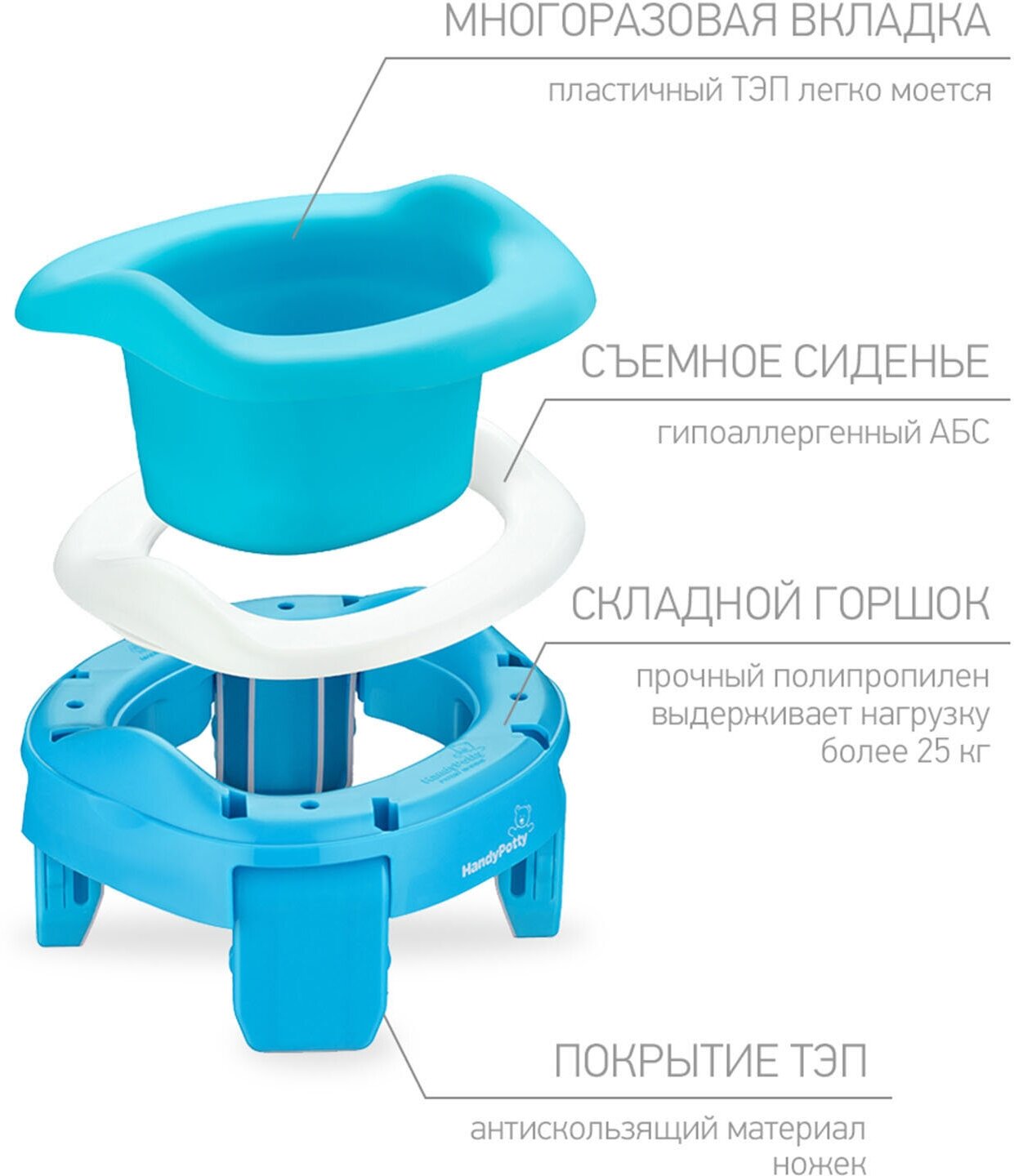 Горшок дорожный складной с многоразовой вкладкой HandyPotty 3 в 1 от ROXY-KIDS, цвет голубой