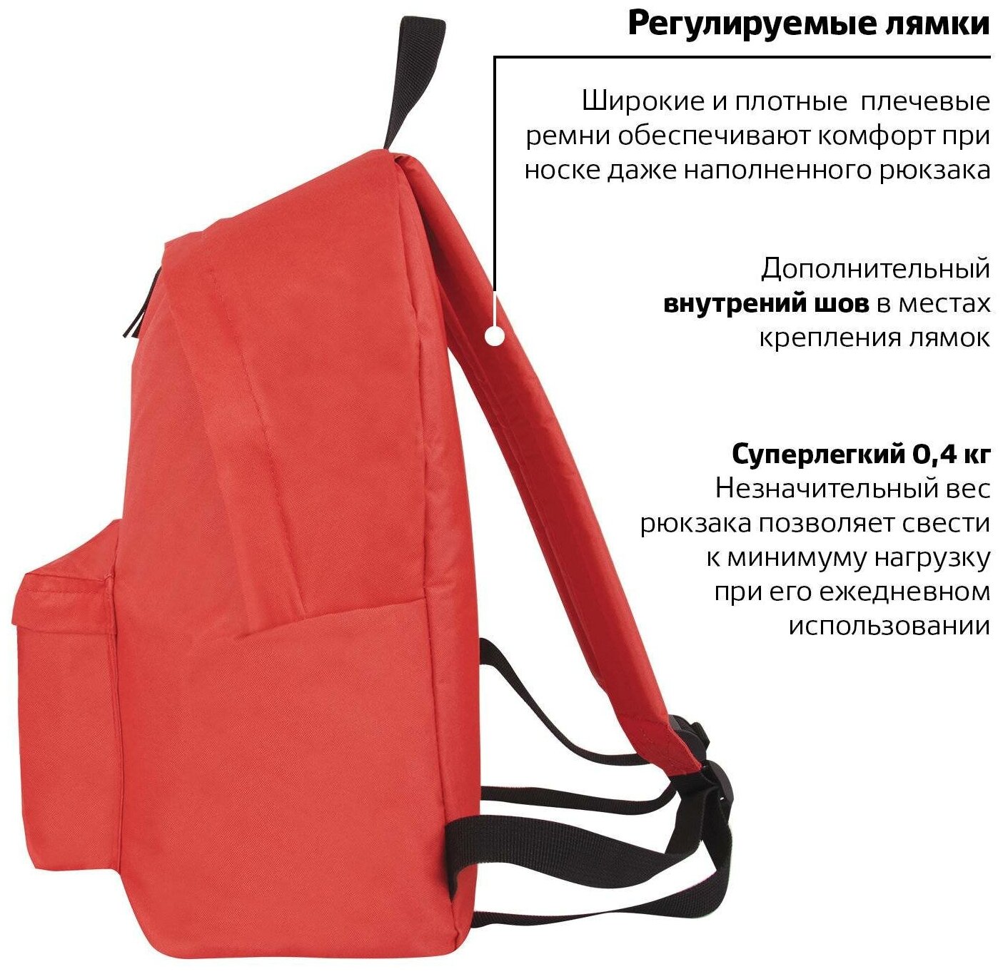 Рюкзак BRAUBERG сити-формат один тон, универсальный, красный, 41×32×14 см, 225379