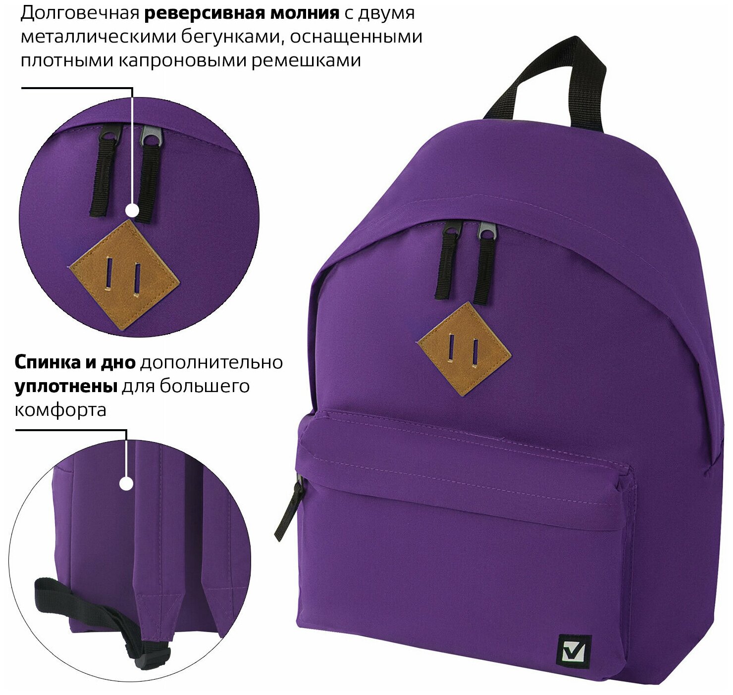 Купить Рюкзак Brauberg универсальный, сити-формат, один тон, фиолетовый, 20 литров, 41х32х14 см