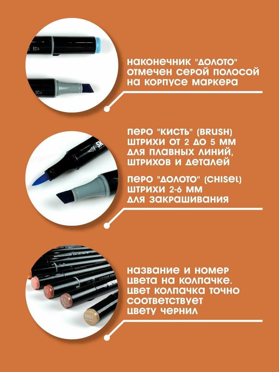 Двусторонний заправляемый маркер SKETCHMARKER Brush Pro на спиртовой основе для скетчинга, цвет: BR12 Имбирь