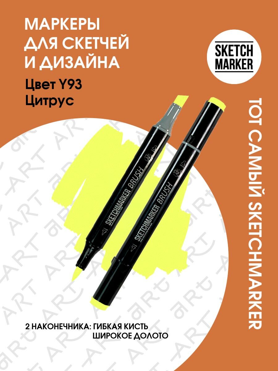 СохранитьХудожественный маркер SKETCHMARKER Маркер спиртовой двухсторонний SKETCHMARKER Brush, Y93 Цитрус интересное:
