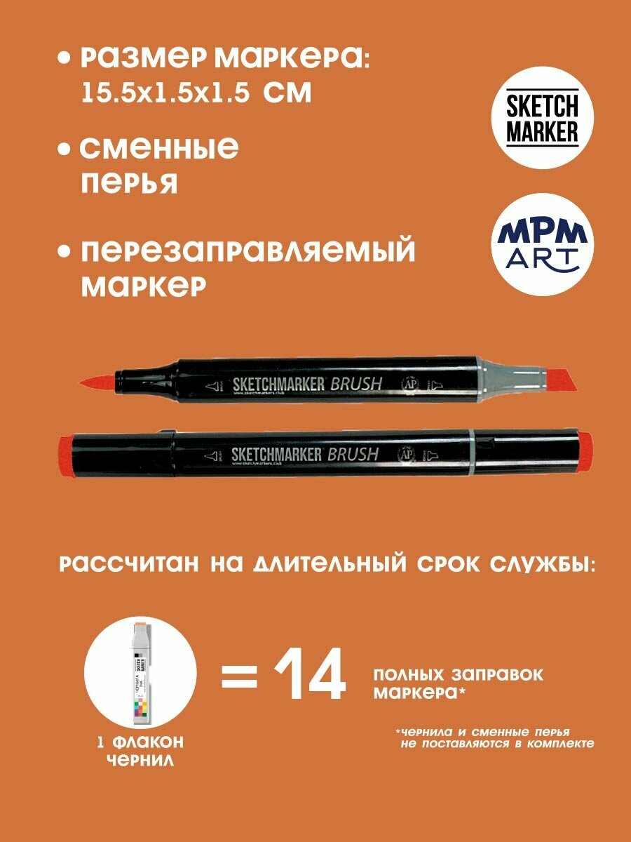 Двусторонний заправляемый маркер SKETCHMARKER Brush Pro на спиртовой основе для скетчинга, цвет: BR12 Имбирь