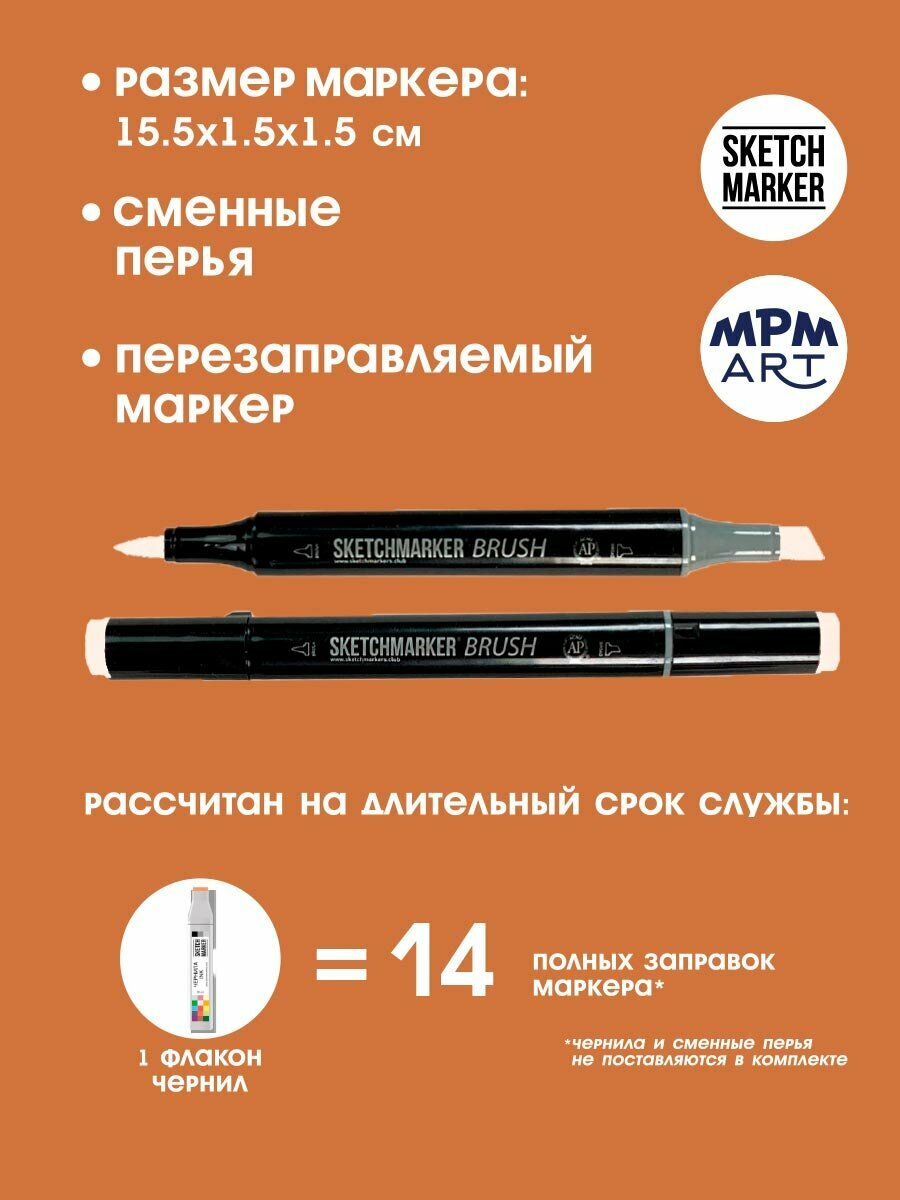 Двусторонний заправляемый маркер SKETCHMARKER Brush Pro на спиртовой основе для скетчинга, цвет: BR12 Имбирь