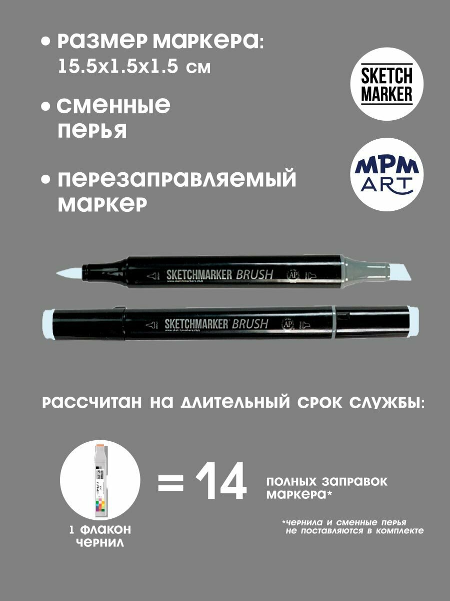 Двусторонний заправляемый маркер SKETCHMARKER Brush Pro на спиртовой основе для скетчинга, цвет: V12 Голубика