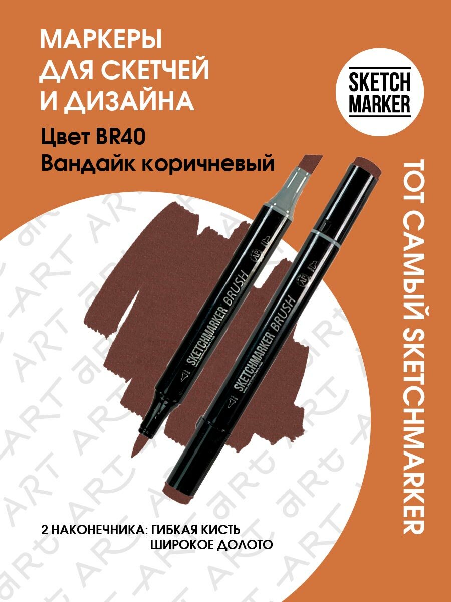 Двусторонний заправляемый маркер SKETCHMARKER Brush Pro на спиртовой основе для скетчинга, цвет: BR40 Ван-Дик коричный