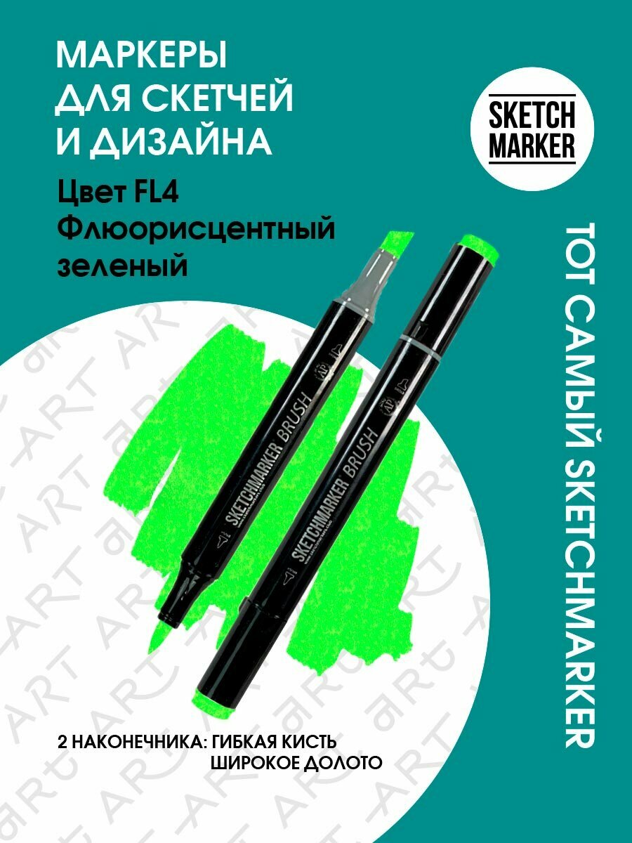 Купить Художественный маркер SKETCHMARKER Маркер спиртовой двухсторонний SKETCHMARKER Brush, FL4 Флуоресцентный зеленый