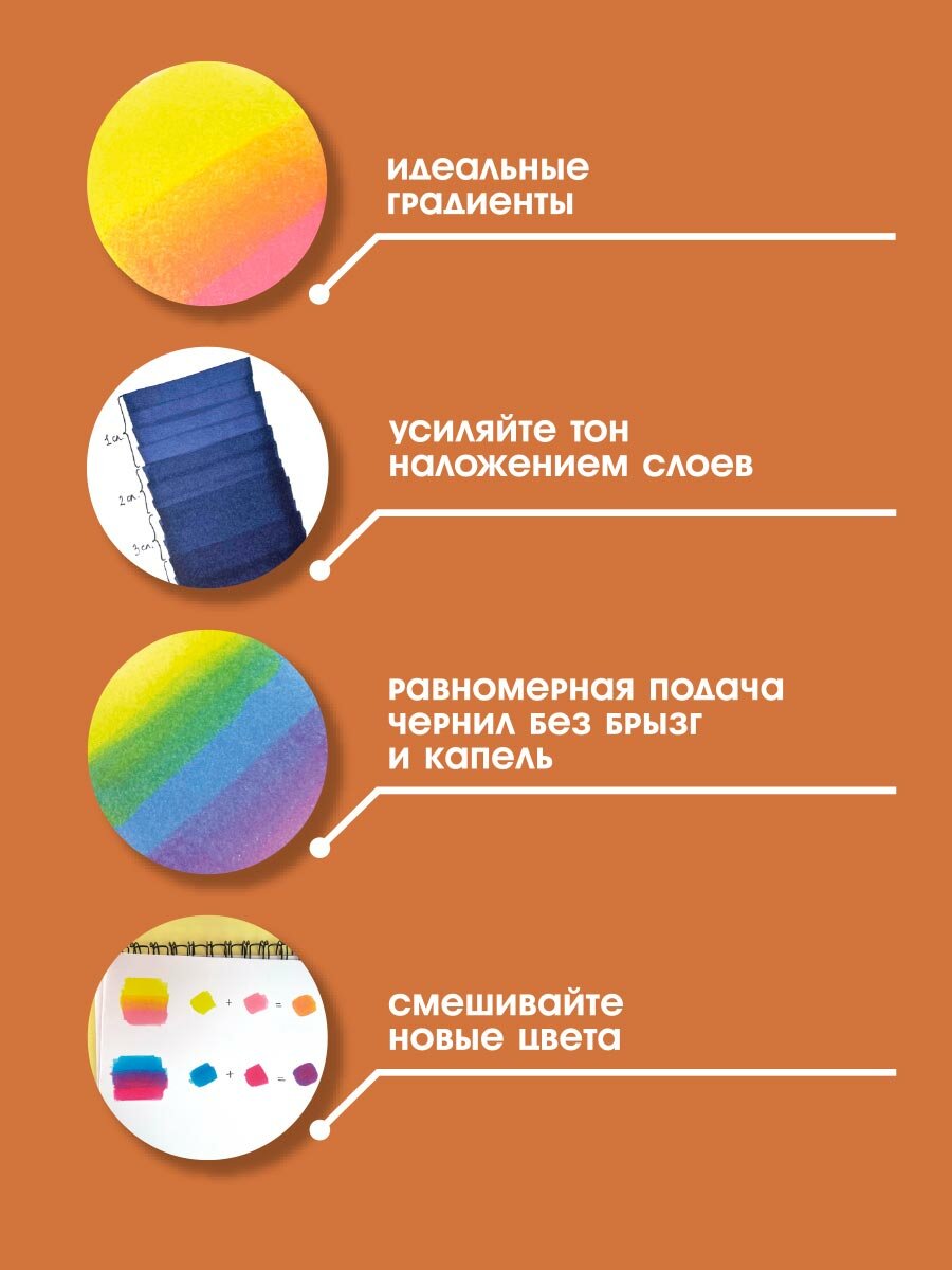 | Отзыв: | В целом маркеры понравились, буду расширять палитру. Корпус тонкий, на любителя, моей руке подходит и в сумке с другими маркерами занимает меньше места. Наконечники позволяют делать красивые акварельные переходы и эффекты. При заливке немного полосят и дают растяжку, но это не столько недостаток сколько особенность. Кисть износостойкая, в сравнении с кистью Copic и Touch более тонкая и мягкая. Своих денег стоит однозначно.