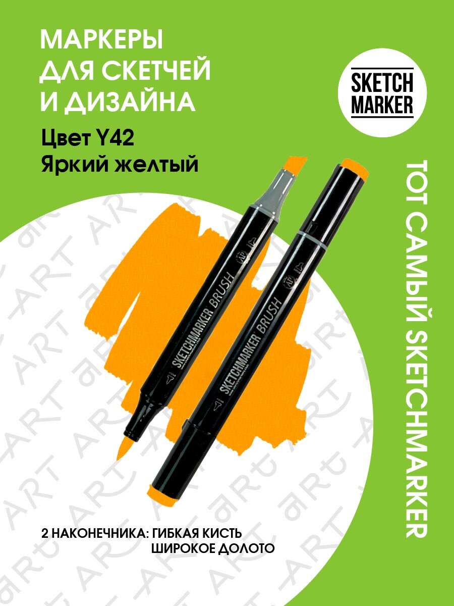 Купить Художественный маркер SKETCHMARKER Маркер спиртовой двухсторонний SKETCHMARKER Brush, Y42 Яркий желтый