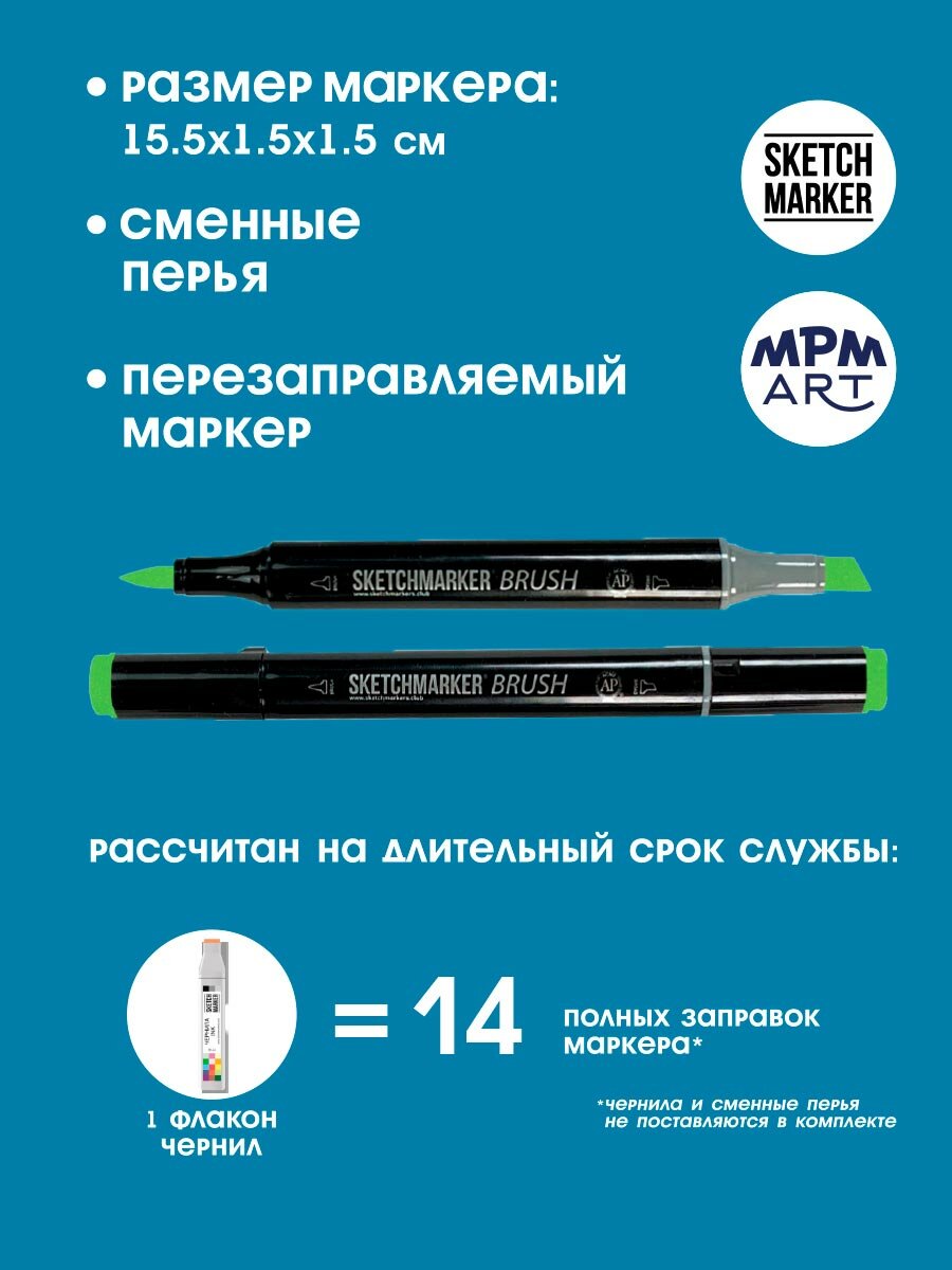 Художественный маркер SKETCHMARKER Маркер спиртовой двухсторонний SKETCHMARKER Brush, G22 Зелёный хром