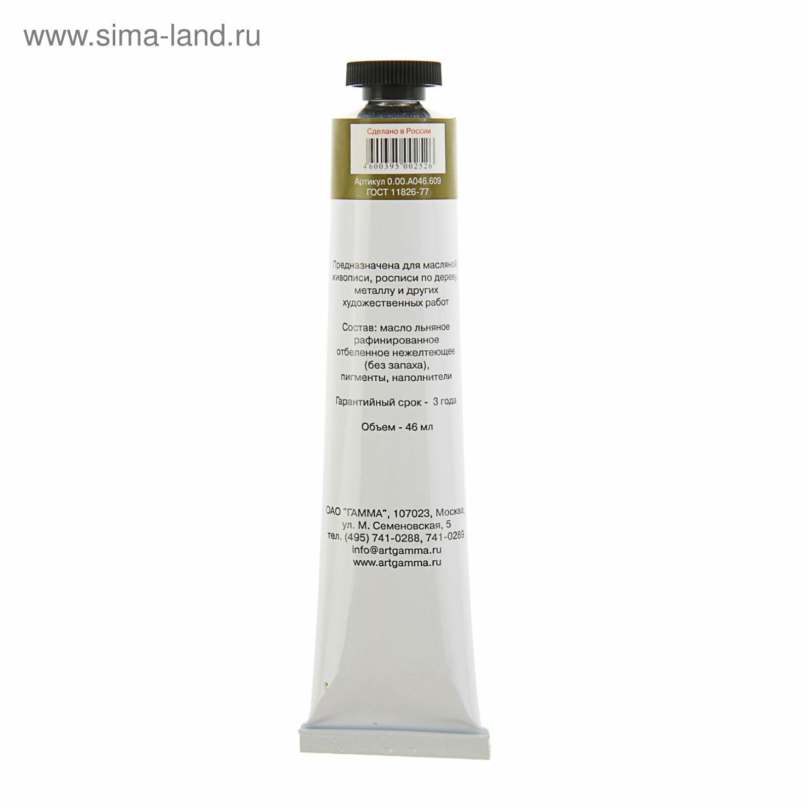 Краска масляная Гамма художественная "Студия", 46мл, туба, белила титановые