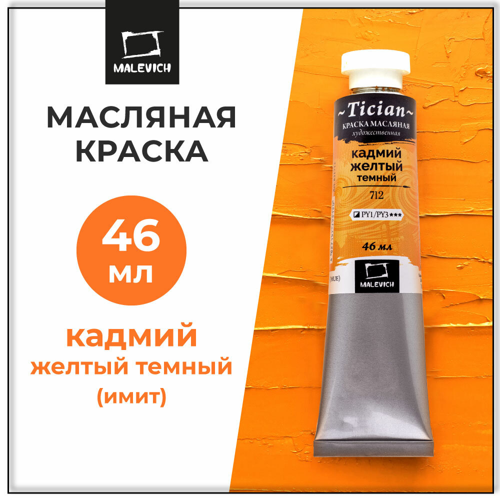 Масляные Малевичъ Масляная краска Tician малевичъ, туба 46мл, 710 Кадмий лимонный