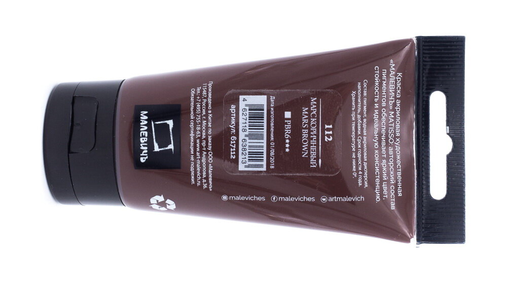 СохранитьАкриловая краска Малевичъ Matisso, марс коричневый, 60 мл интересное: